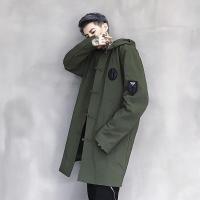 风衣男中长款韩版学生帅气潮牌连帽长款修身男士秋季夹克外套潮流
