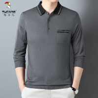 男装长袖T恤新款翻领polo衫衬衫领中老年男装休闲衣服男