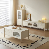 全友家居简约现代高低茶几组合电视柜钢化玻璃半开放式储物柜客厅家具套装