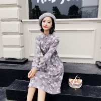 珂依舍2017秋装新款2017秋冬新品灯芯绒碎花立领中长款长袖连衣裙