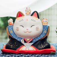 小号招财猫摆件现代简约可爱迷你陶瓷办公桌酒柜家居电视柜装饰品