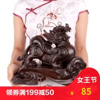 黑檀实木雕刻木雕貔貅摆件风水招财办公室客厅玄关工艺品开业礼品