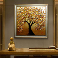 餐厅油画发财树客厅挂画卧室玄关抽象招财树立体装饰画金钱树