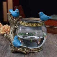 欧式创意鱼缸装饰品水草花瓶办公桌客厅电视柜家居风水招财摆件