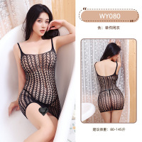 九里晴川性感诱惑激情免脱镂空连体网衣裙透视网衣情趣内衣 九里晴川WY080[镂空露背网衣裙] 均码