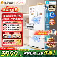[美的出品]华凌神机机皇518 自动制冰双系统双循环 60cm超薄零嵌法式多门家用电冰箱 HR-518WUFIPZ雾隐白