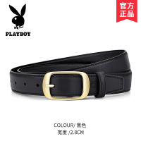 花花公子女士皮带百搭裤腰带真皮装饰牛仔裤带方扣细黑色时尚韩版