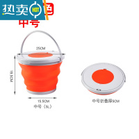 敬平便携式打水桶塑料家用折叠桶洗车小洗澡美术储水旅行车用钓鱼户外 5升带盖圆形橙色(送绳子)