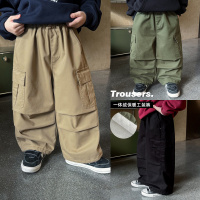 童酷男童秋款洋气纯色侧贴袋宝宝长裤潮酷宽松百搭儿童工装裤