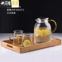 三维工匠冷水壶凉水壶家用超大可高温防爆玻璃水壶凉白开水壶凉茶壶果汁壶 麦穗壶+麦穗圆杯*2+日式茶盘