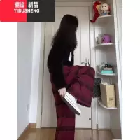 YIBUSHENG美拉德红色格纹阔腿休闲裤女春秋大码宽松显瘦加绒加厚直筒长裤子