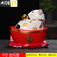 三维工匠小老鼠存钱罐女本命年储蓄罐卡通能进能出和只进不出陶瓷红色摆件 6寸金元宝[只进不出]