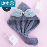 敬平包头巾干发帽吸水速干发巾女2021新款洗头毛巾擦头发器浴帽 浅灰双层加厚)1个装