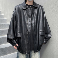男装复古潮流宽松机车PU皮衣夹克男新款春秋季美式百搭上衣男外套