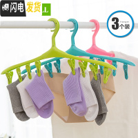 三维工匠晾袜子衣架多夹子多功能圆盘家用晒挂架衣撑衣夹婴儿宝宝塑料圆形 3个8夹[蓝/粉/绿] 1个