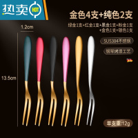 敬平304不锈钢水果叉家用儿童安全蛋糕叉子轻奢水果签果插 红金1+绿金1+粉金1+黑金1+金色1+银色1