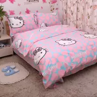 美帮汇热卖粉色猫床单棉床笠枕套被单被套单件三四件套