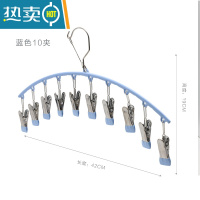 敬平晒袜子衣架家用挂衣多夹子晾晒袜架内衣内裤衣夹宿舍收纳挂钩 天蓝色10夹