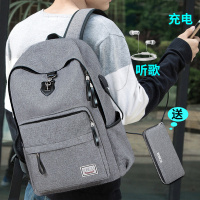 双肩包男休闲旅行男士背包高中初中大学生书包电脑工装潮牌大容量NEW LAKE 灰色/无/第二天发货