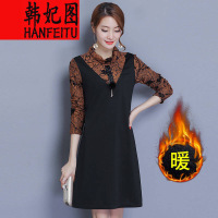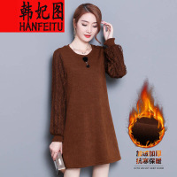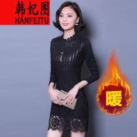 韩妃图(HANFEITU)2017冬季加厚冬裙打底裙女中长款内搭秋冬新款韩版蕾丝加绒连衣裙