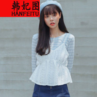 韩妃图(HANFEITU)2017秋季新款韩版百搭小清新蕾丝吊带两件套上衣女