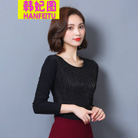韩妃图(HANFEITU)2017亮丝圆领网纱打底衫蕾丝衫长袖加厚加绒