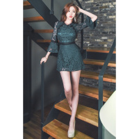 夜店性感女装蕾丝镂空名媛主播喇叭袖拼接修身显瘦秋季连衣裙图色