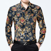 17秋冬中老年男装衬衣龙虎图印花翻领休闲衬衫时尚百搭