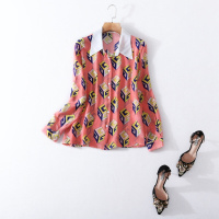 新款欧美精品女装长袖印花真丝衬衫女翻领中长款上衣女图色