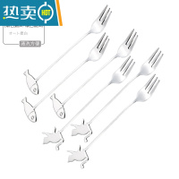 敬平水果叉304不锈钢家用可爱卡通儿童水果签ins风欧式果插叉子套装 3只猫叉+3只鱼叉(6只银色)[水果叉]