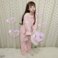 秋冬季女装韩版毛毛荷叶边长袖睡衣+睡裤套装两件套居家服可爱萌