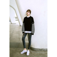 秋装女2017新款条纹可爱毛衣女甜美bf宽松套头长袖慵懒上衣