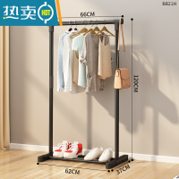 敬平衣帽架简易晾衣架落地室内家用卧室双杆式挂衣架子阳台衣服收纳架 64cm黑|入门款★特粗加厚