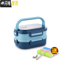 三维工匠学生304不锈钢饭盒分隔型上班族2双层便当盒多层分格手提分层餐盒 四面扣2层撞色蓝