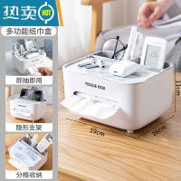 敬平客厅纸巾盒轻奢ins风茶几创意多功能遥控器家用简约现代抽纸盒子 石纹色[轻奢风]高颜值