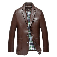 海宁男士西装领皮衣男秋冬款中老年皮夹克中年短款休闲皮外套爸爸