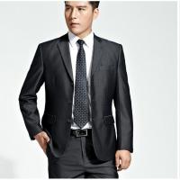藏青色男士毛料西服套装中老年宽松商务正装纯色羊毛西装藏青色