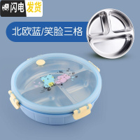 三维工匠304不锈钢分格饭盒小学生防烫带盖密封餐盘三格儿童分隔卡通餐盒 北欧蓝/笑脸三格