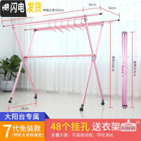 三维工匠晾衣架落地折叠室内家用阳台双杆式伸缩晾衣杆凉衣服架折叠晒衣架 7代免装款玫瑰金(大号+轮) 大