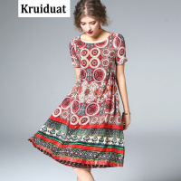 Kruidvat2017春季新款女装欧美气质大摆印花连衣裙A字中长YLYP图片色