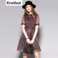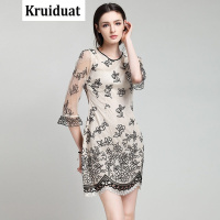 eosciy/Kruidvat2017春季新款欧美女装网纱蕾丝镂空刺绣连衣裙气质A五分袖字