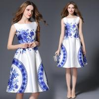 2017新款女装欧美风格装青花瓷印花背心裙时尚无袖A字连衣裙图片色