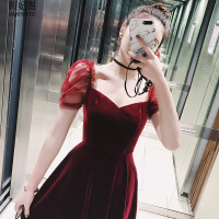 韩妃图(HANFEITU)2018红色连衣裙女春高腰荷叶边公主袖欧美名媛内搭A字中长裙