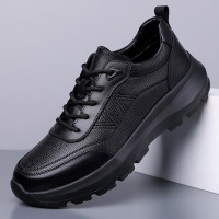 男士真皮商务休闲皮鞋男潮新款系带男鞋头层牛皮中老年爸爸鞋