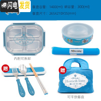 三维工匠韩国成人简约分格餐盒 304不锈钢上班族保温四格便携大饭盒带盖 简约蓝可拆4+碗+保温杯送餐具+包