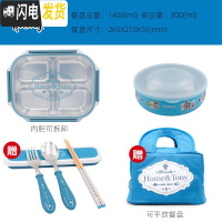 三维工匠韩国成人简约分格餐盒 304不锈钢上班族保温四格便携大饭盒带盖 简约蓝可拆4+碗送餐具+包