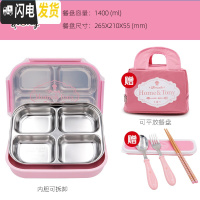 三维工匠韩国成人简约分格餐盒 304不锈钢上班族保温四格便携大饭盒带盖 简约粉可拆4送餐具+包