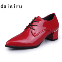 红色皮鞋女英伦系带粗跟休闲鞋尖头百搭单鞋女