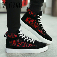 路蒙卡帝秋季潮流高帮鞋韩版学生帆布鞋男士运动板鞋百搭休闲鞋个性冬季鞋