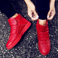 路蒙卡帝秋季高帮鞋子红鞋男潮流社会快手红人情侣青春潮流青少年女生板鞋